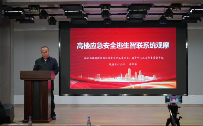 江北水城旅游度假區管委會黨委委員、服務中心主任崔躍華指出:“高樓應急安全逃生智聯系統”項目的推進是一項事關人民群眾生命安全大事的民生工程。是我們堅持以人民為中心,踐行安全發展理念,打造安全、宜居城市的集中體現。他表示:安全是城市的生命。打造高樓應急安全逃生智聯系統示范區、示范城市,將成為我們創新城市發展方式、提升城市安全治理能力的又一新亮點。