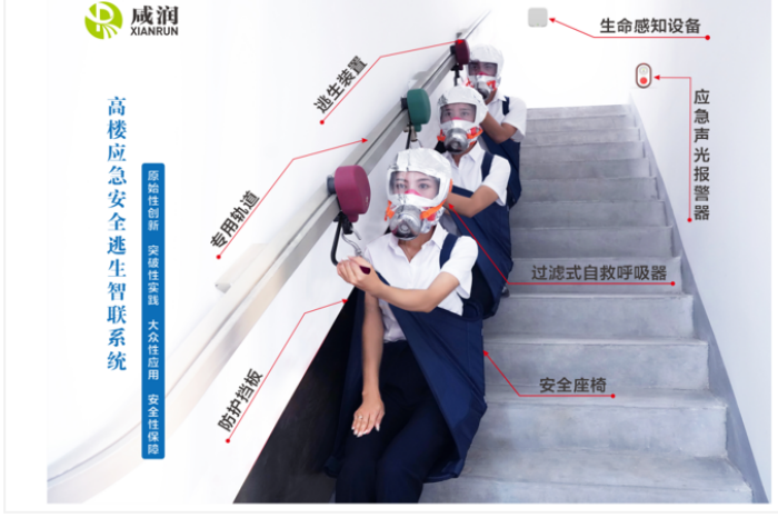 “高樓應(yīng)急安全逃生智聯(lián)系統(tǒng)”項(xiàng)目,可有效解決高層建筑及各類人員密集場所內(nèi)涉險人員的群體性緊急疏散難題, 在傳統(tǒng)“防、消、救”的層面上,增加了“逃”的功能。當(dāng)發(fā)生火災(zāi)等緊急情況時,第一時間實(shí)現(xiàn)聯(lián)動報警,百米高層3分鐘快速逃生,高效有序撤離至地面安全地帶。同時結(jié)合物聯(lián)網(wǎng)+功能,對樓內(nèi)人員進(jìn)行生命探測、位置追蹤,為消防隊(duì)員提供精準(zhǔn)救援信息,將主動自救互救和協(xié)同組織救援緊密結(jié)合,有效提高救援全過程質(zhì)效,降低人員密集場所群死群傷重特大火災(zāi)事故的發(fā)生幾率,扭轉(zhuǎn)重特大事故多發(fā)被動局面,減少人員傷亡及財產(chǎn)損失,全方面保障人民生命財產(chǎn)安全,填補(bǔ)人員密集場所緊急疏散基礎(chǔ)設(shè)施建設(shè)空白。